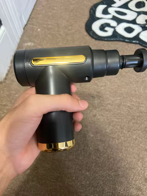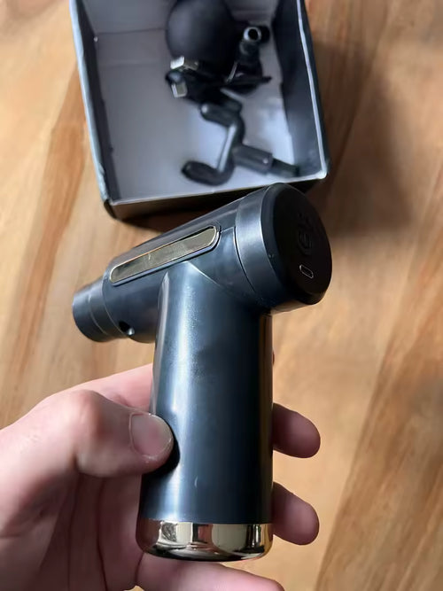 Answer 3: The massage gun features a sleek, lightweight design and is ergonomically built for easy handling. With its rechargeable battery and compact size, it’s perfect for on-the-go use, allowing you to enjoy muscle relief anywhere—from your office to your next travel destination.